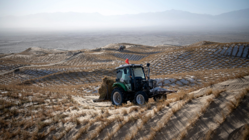 甘肃阿克塞:雪后忙治沙