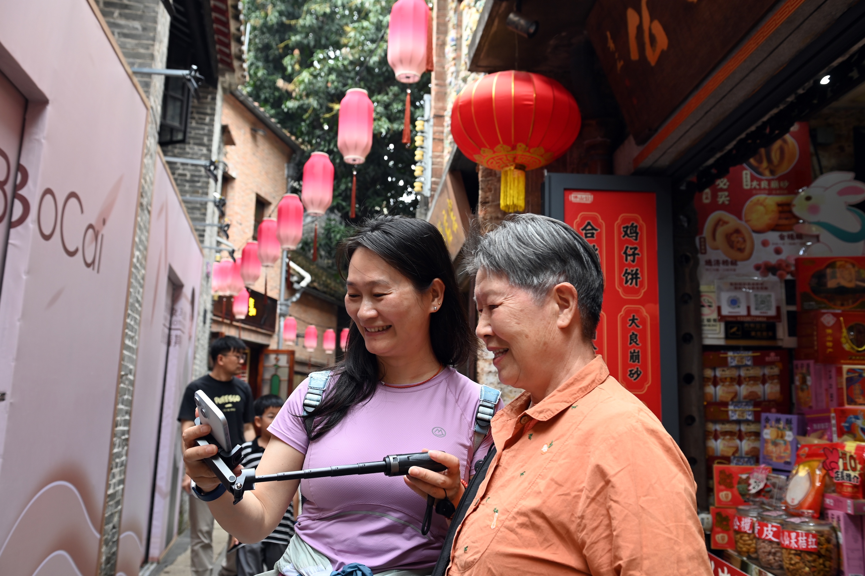 游客在佛山市岭南天地里购物、休闲。邱活摄