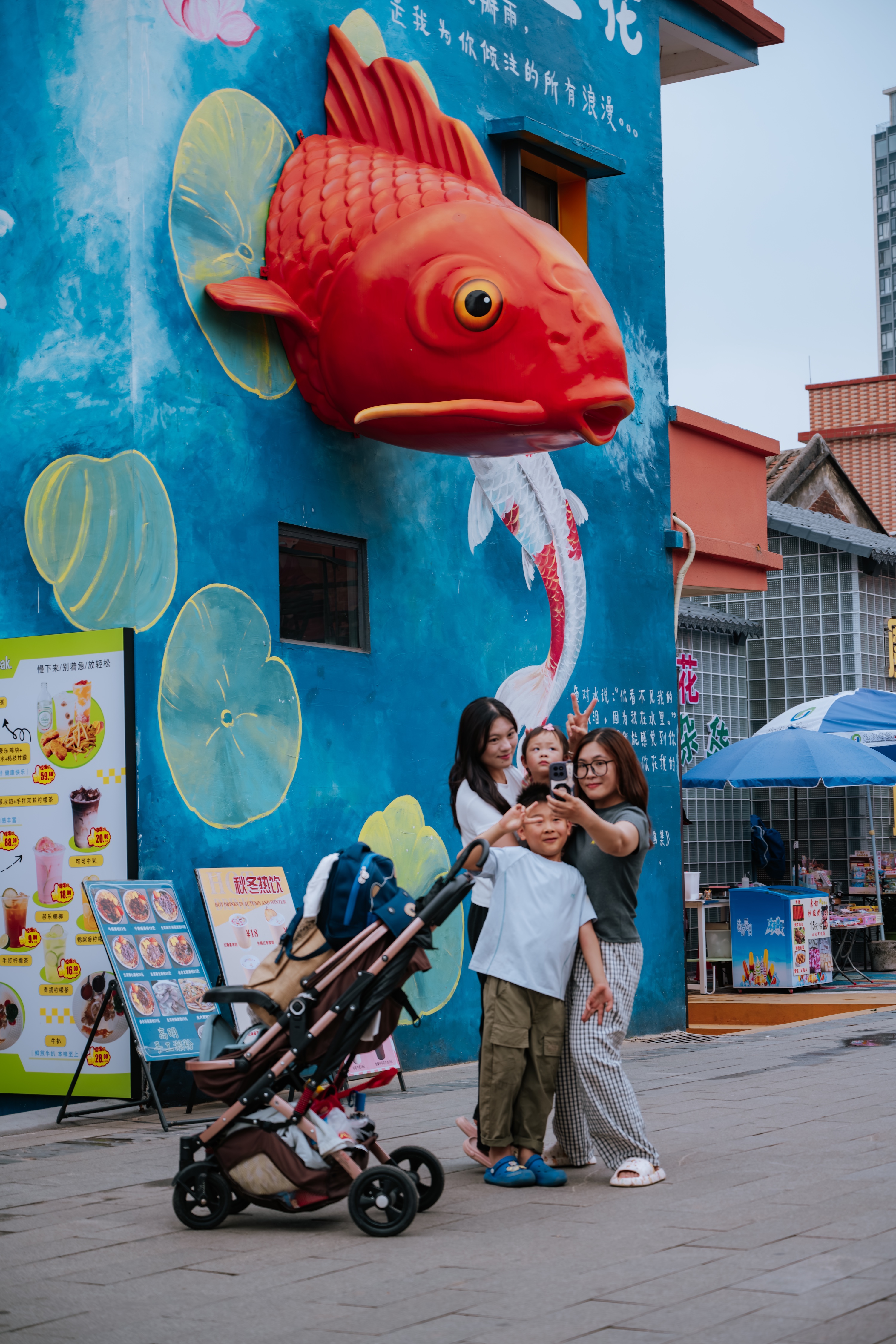 从娅米的阳光城堡驱车半小时,苏村便出现在视野中。曾经,这里一度是环境落后、经济薄弱的“空心”村庄,如今却成了以锦鲤文化为IP的网红打卡村。