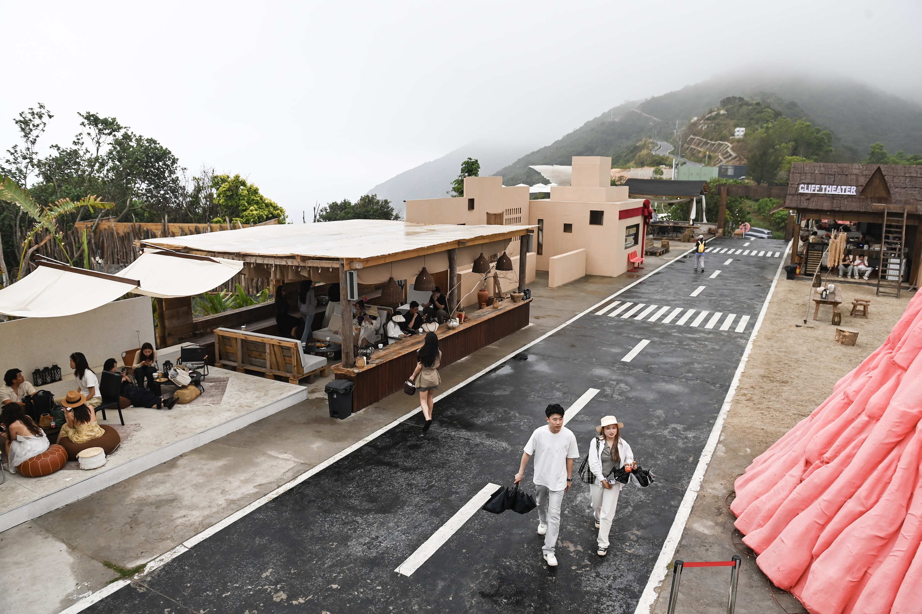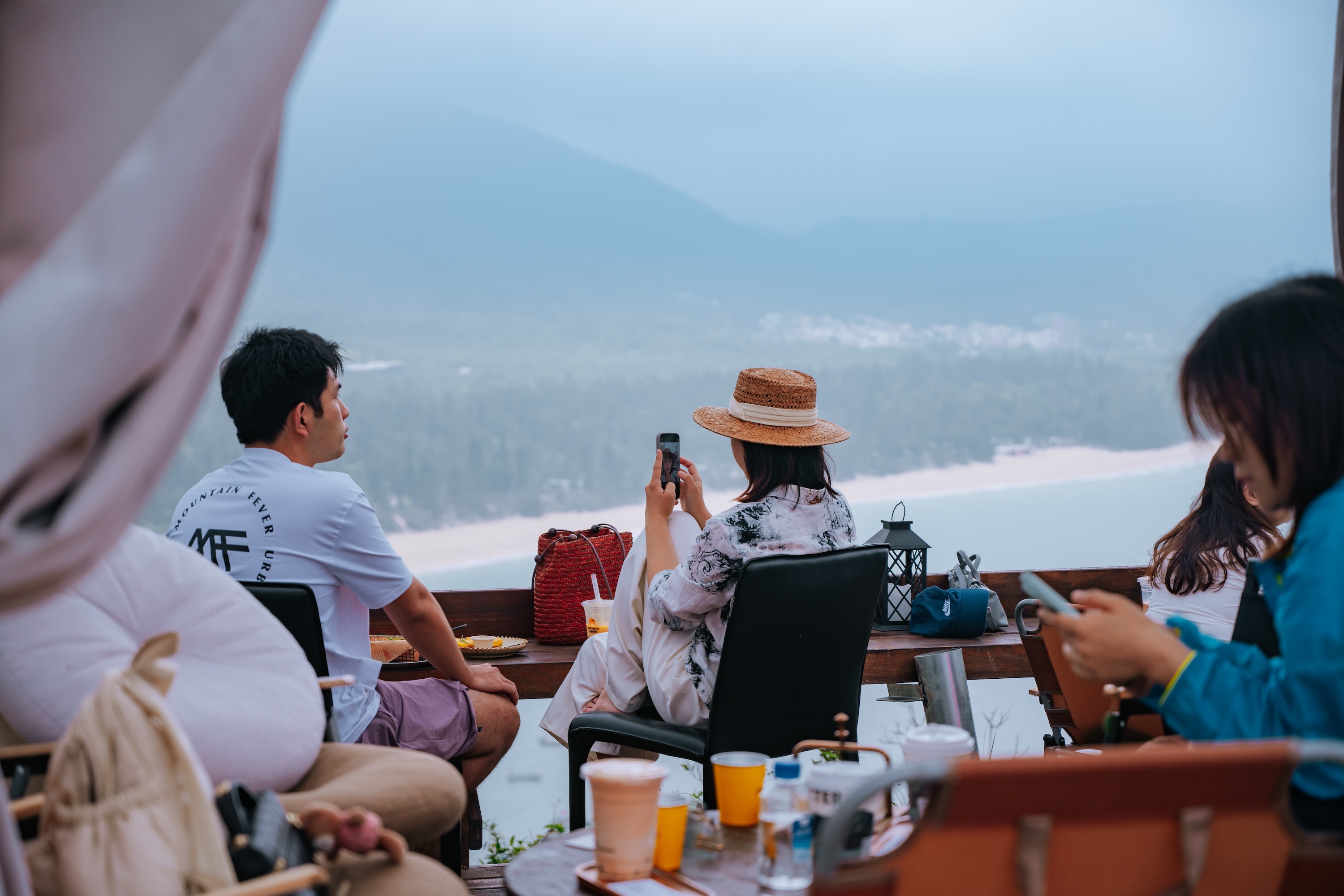 沿着西涌海岸的望鱼岭山路盘旋而上,一处海景餐厅静立于山巅,整个西涌海湾尽收眼底。在这里,汇聚着不少衣着靓丽的年轻人,有人三两结伴,互相拍照打卡;有人靠山望海,与友人畅聊人生;还有人静品一杯咖啡,在山海间放空凝思。