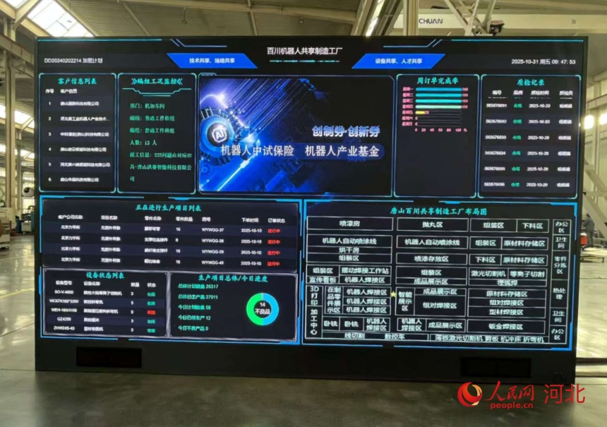 百川机器人共享制造工厂生产情况进度表。人民网记者 朱延生摄