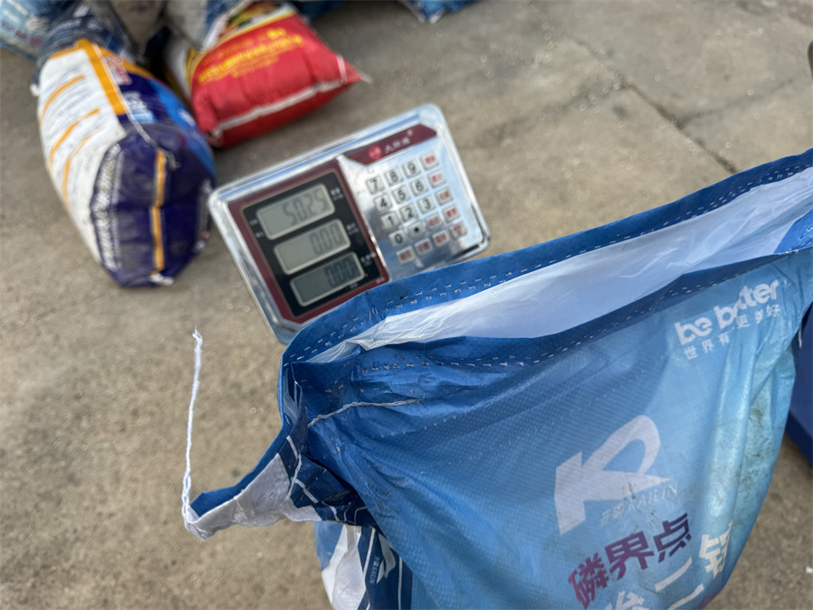 检查组先后来到各管理区晒场,通过实地查看、现场问询、查阅台账、随机抽查等方式,对肥料的储存保管条件、出入库台账记录、肥料混拌等环节进行细致检查。在肥料混拌环节,检查组重点核对配比是否准确、操作是否规范、记录是否完整,并对肥料包装重量进行随机抽检,严查缺斤少两问题,确保足斤足量。同时,严防混拌不均、配比失误等问题发生,确保每一袋肥料质量达标、使用安全。