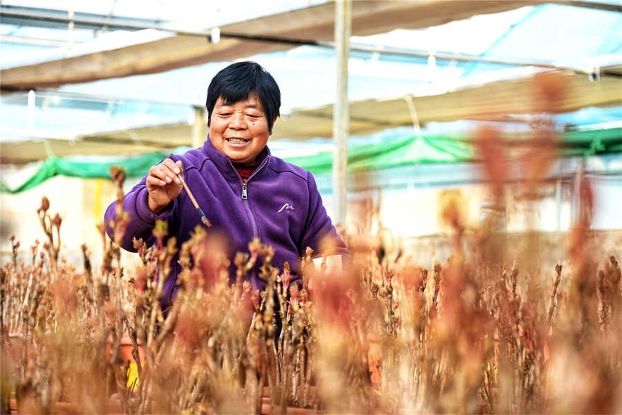 随着元旦临近,洛阳市今冬首批催花牡丹陆续上市。据悉,今年洛阳市牡丹盆花生产将达到100万盆,成为推动乡村振兴的重要特色富民产业。(张光辉 石智卫)