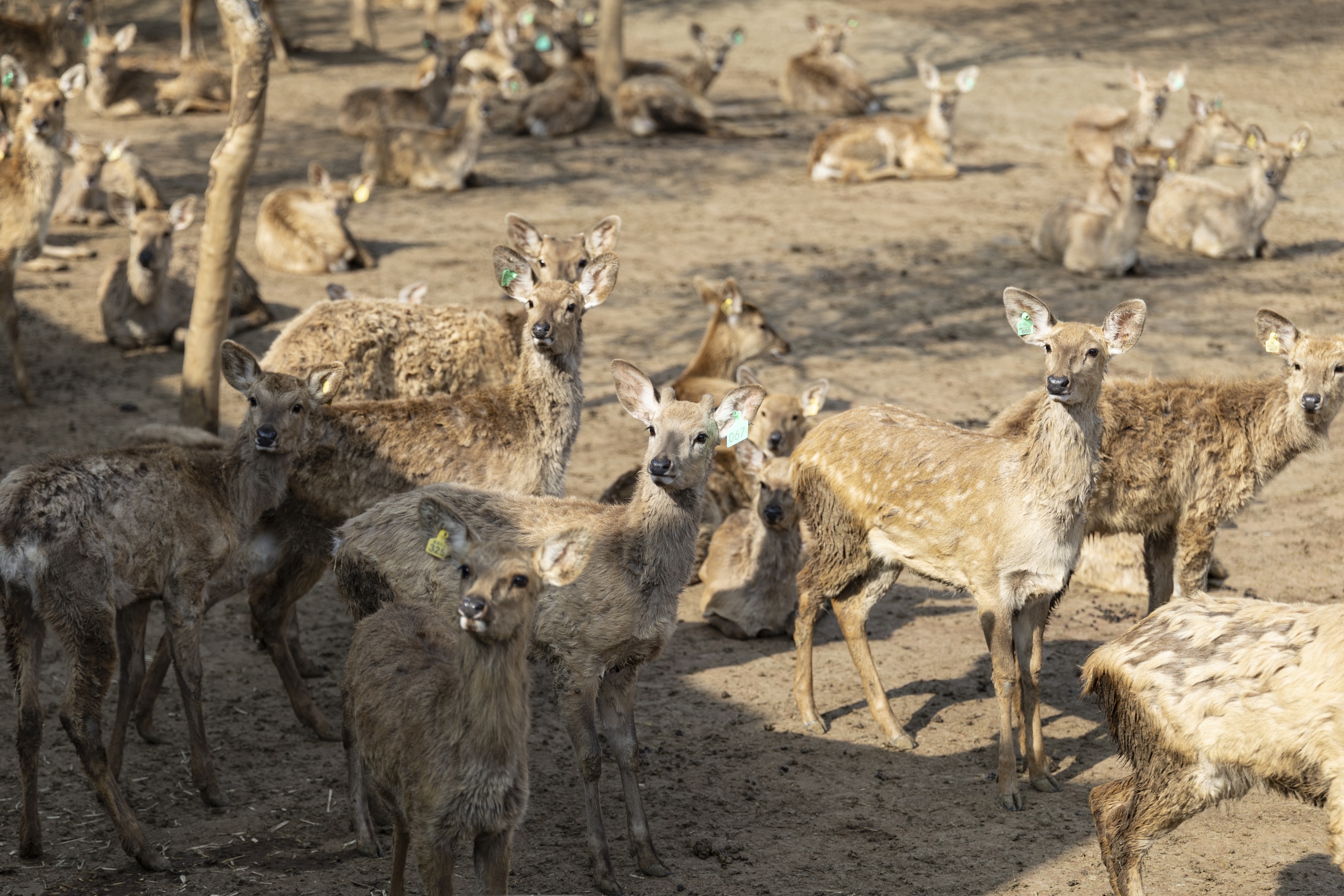 湖北省荆门市屈家岭管理区,湖北晶鹿牧业股份有限公司养殖的梅花鹿。王剑摄
