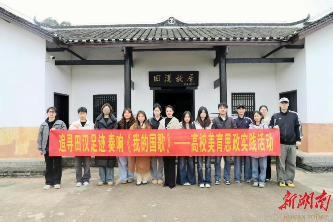 科教新报·新湖南客户端讯(通讯员 牛丽娟 杨森)为深入贯彻落实立德树人根本任务,扎实推进《我的国歌》思政音乐课教学实践,充分激活红色文化资源的育人潜能,3月21日,湖南信息学院艺术学院师生代表走进田汉故里,开展以“追寻田汉足迹,奏响《我的国歌》”为主题的校外思政实践教学。这场跨越时空的精神对话,将思政课堂搬进红色圣地,让青年学子在历史现场触摸《义勇军进行曲》诞生的血泪与荣光,深刻领悟国歌精神穿越岁月的不朽力量。