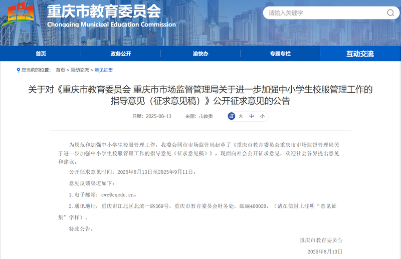 在江西探索校服管理优化路径的同时,重庆市今年8月出台的校服管理新规提供了有益参考。重庆市教育委员会与重庆市市场监督管理局联合发布的指导意见,突出了“明确主体责任、强化家长监督、鼓励自主选购”三大特点。