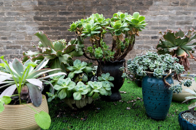晋城市泽州县保福村多肉坊培育的多肉盆景。焦搏文摄