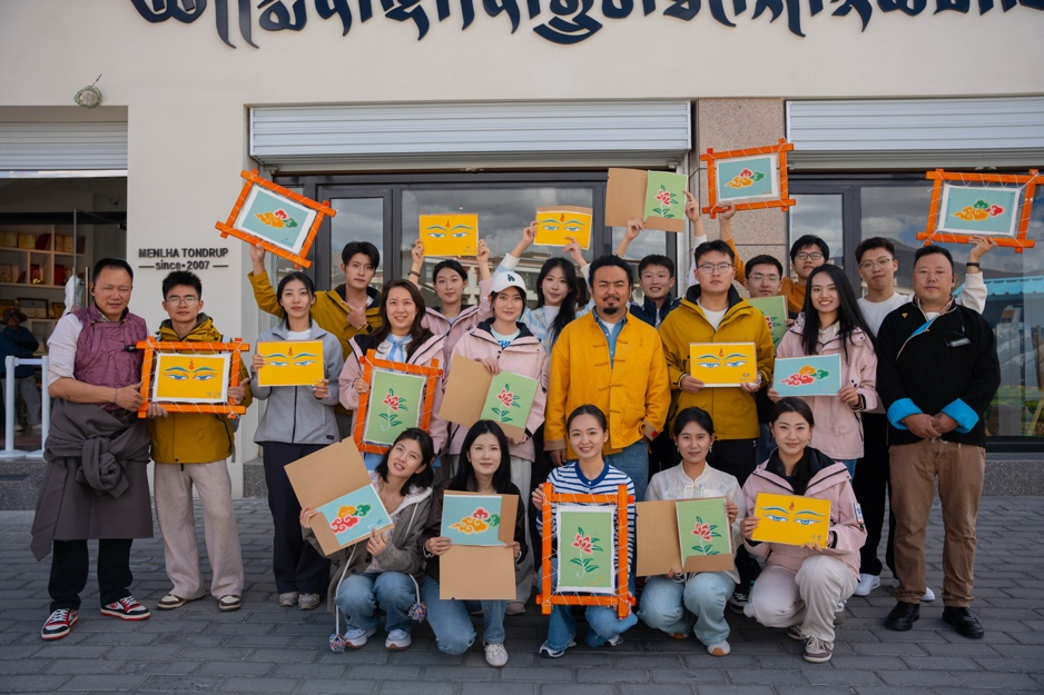图为:大学生们前往勉拉顿珠唐卡体验馆