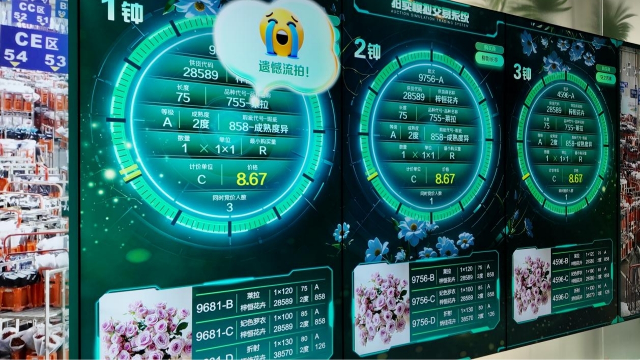 图为中国斗南花卉展览馆内展示的花卉拍卖模拟交易系统。人民论坛记者李一丹 摄