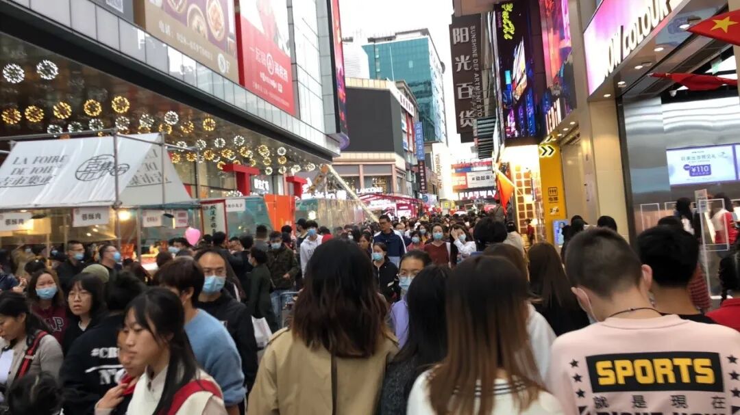 成都最繁华的商业街春熙路,原本不宽阔的街道上挤满了人群。供图:《中国经济周刊》读者