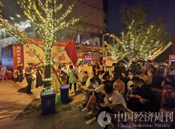 号称主打新派中式茶饮的“茶颜悦色“,已经成为了长沙的城市名片,不少年轻人都为了喝一杯”茶颜悦色“来到长沙。摄影:《中国经济周刊》记者 李永华