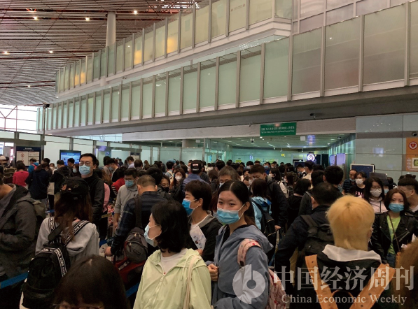 国庆假期前四天,全国道路预计发送旅客1.91亿人次,民航执行航班58608班,运输旅客648万人次。摄影:《中国经济周刊》记者 周琦