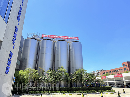 来到上海市紫东路489号,首先映入眼帘的便是光明乳业华东中心工厂门口那十几座醒目的储料罐。其中,最大的奶罐高达三层楼,可容纳120吨牛奶,旁边还有约65吨的小罐,它们共同构成了工厂的“第一站”——原奶储存区。