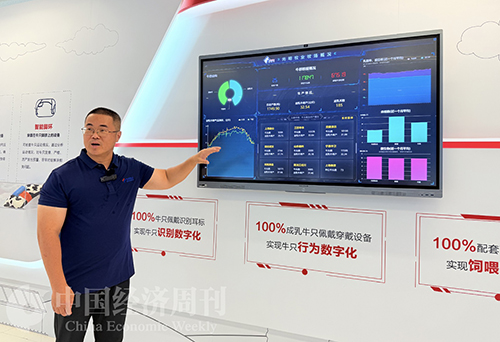智能化同样延伸至百公里外的牧场。光明乳业华东中心工厂项目部经理王剑铭引导记者看显示屏实时画面,这里的奶牛佩戴“计步器”,每日行走数据实时上传。