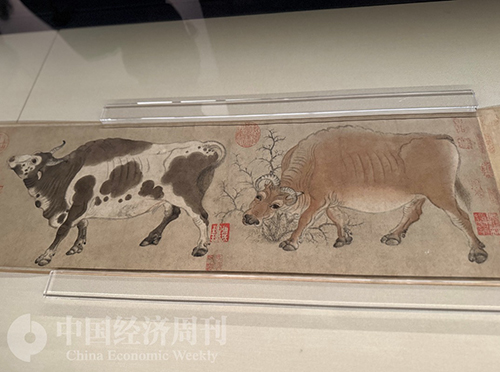 在《五牛图》前,我被这幅唐代韩滉的传世名作震撼,五头牛姿态各异,眼神温顺或倔强,皮毛的质感仿佛触手可及。故宫博物院研究馆员许彤曾在采访中介绍,刚收回这幅画时,它经历了千百年的流转,上面大小破洞有300多处,非常残破。修复专家孙承枝凭借60余年的修复经验,通过揭裱、修补、全色又重装等,最终让这幅传世名作获得新生。