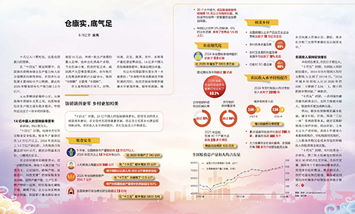 “十四五”时期,我国全方位夯实粮食安全根基,粮食年产量稳定在1.3万亿斤以上,2024年首次迈上1.4万亿斤新台阶,人均粮食占有量达到500公斤,做到谷物基本自给、口粮绝对安全。