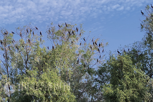 工作人员介绍,很多鸟类到南沙湿地公园越冬或是把这里作为迁徙的中转站,有黑脸琵鹭、中华秋沙鸭、鸬鹚、苍鹭、白鹭等。游船经过一片树林,只见树枝上蹲着很多黑色的鸟,工作人员介绍是鸬鹚,调研人员纷纷举起手机拍照,惊叹“第一次见这么多鸬鹚聚在一起”。