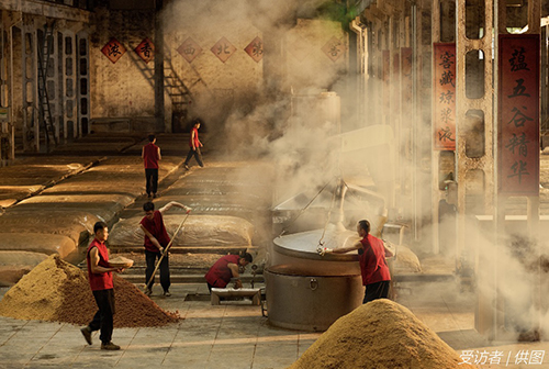 在甘肃陇南徽县的酿酒车间里,蒸汽弥漫,空气中氤氲着粮食发酵的酒香,工人们正在将发酵好的酒醅装入甑锅。这是金徽酒一间正在酿酒的传统车间,酿出的酒将经过不同年份的窖藏以及调酒工艺,制成满足不同消费群体的产品摆上货架。