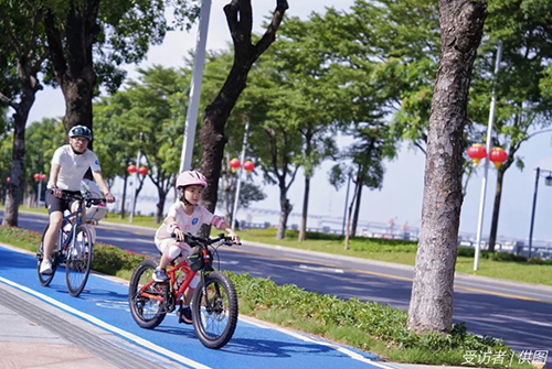 人们在滨江路骑行