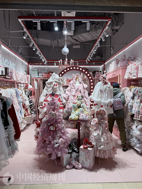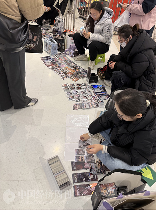 戴着彩色假发、化着浓妆、穿着动漫服饰的年轻人频繁出入老商场;有时,一群女生举着印有明星头像的小扇子,一脸兴奋地守在商场大屏前等待一闪而过的应援画面;转角处,学生模样的年轻人聚在一起,认真清点、交换着手中的卡牌和玩偶;不远处的猫咖、狗咖橱窗外,也总围着轻声惊叹、举起手机的年轻面孔……