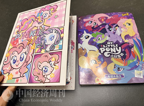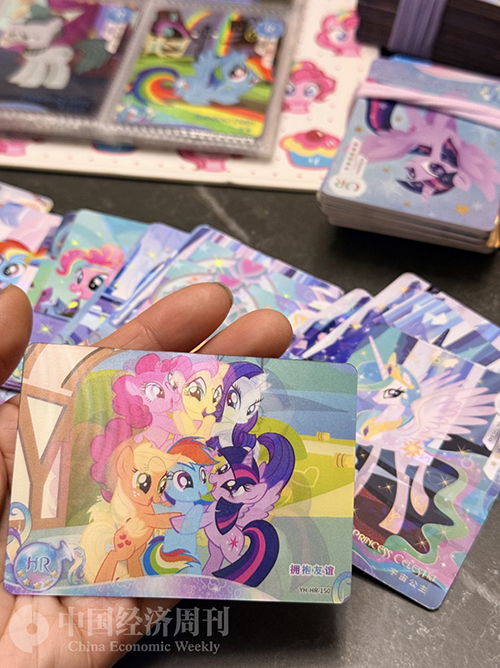 一开始是因为同学都在玩。他们告诉我这些小卡有“收藏价值”,还能在网上卖钱。我其实不太懂,只觉得卡片都亮晶晶的,很漂亮,而且还有我喜欢的小马宝莉。下课大家都围在一起讨论,我怕跟不上话题,就跟着一起玩了。