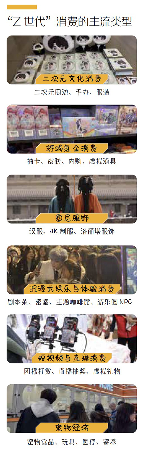 事实上,这些看似零散的场景背后,蕴藏着一股不容小觑的年轻消费力。从二次元“谷子”(Goods的音译)、游戏抽卡,到圈层服饰,再到宠物情感消费,一系列新型消费从“小众兴趣”持续“出圈”,成为“Z世代”(1995年至2009年出生人群)的主流生活方式。