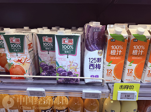商超售卖的各类果汁产品 本刊记者 侯隽I摄