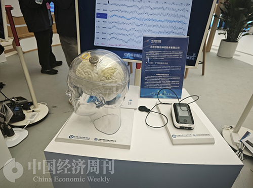 一套脑机接口设备吸引了很多人驻足。北京芯智达业务发展部华迤告诉本刊记者,这款“北脑一号”智能脑机系统,已经成功应用在7位有运动功能障碍、言语障碍的患者身上。一位30岁患者因车祸导致腰部脊髓损伤下身瘫痪,妻子为照顾他,只能把工作辞了。在“北脑一号”等相关治疗后,患者生活可以自理,妻子也可以正常外出工作。