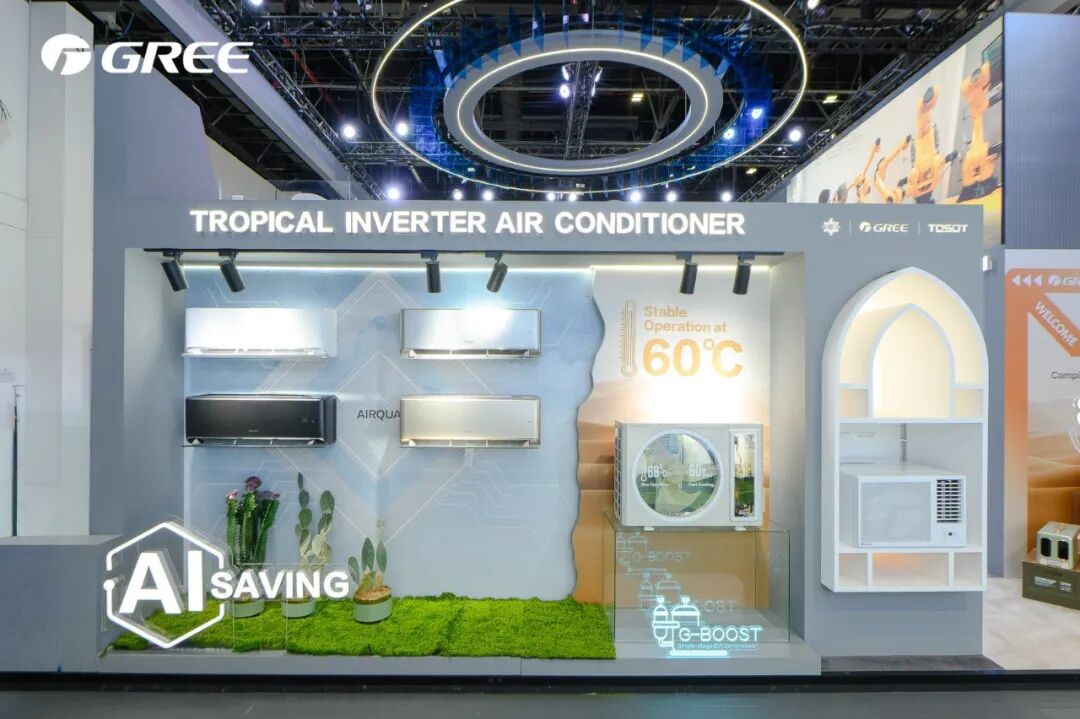 核心部件展区,格力展示了全品类自主压缩机技术的硬核实力。专为极端气候设计的 G-Boost 单级增焓压缩机,即便在 68℃高温环境中仍能稳定运行,搭配格力 AIRQUA 分体机可实现 8℃出风温度,精准满足中东用户快速降温与大风量的双重需求。此外,-38℃瞬冻冰箱、洗烘护三合一高端洗护机等智能产品同步亮相,构建了覆盖 “空气、膳食、洗护、工业” 的全场景智慧生态,彰显了格力在多元化赛道的技术整合能力。