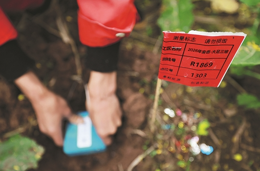 物探作业人员将标有记号的节点地震仪插入土中10厘米,在保障信号采集精度的同时,严格控制作业深度,避免扰动农田生态。