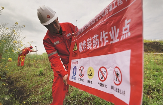物探作业人员在野外爆炸装药作业点布设安全警示标识,以规范操作、防范风险,保障油气勘探作业安全有序开展。