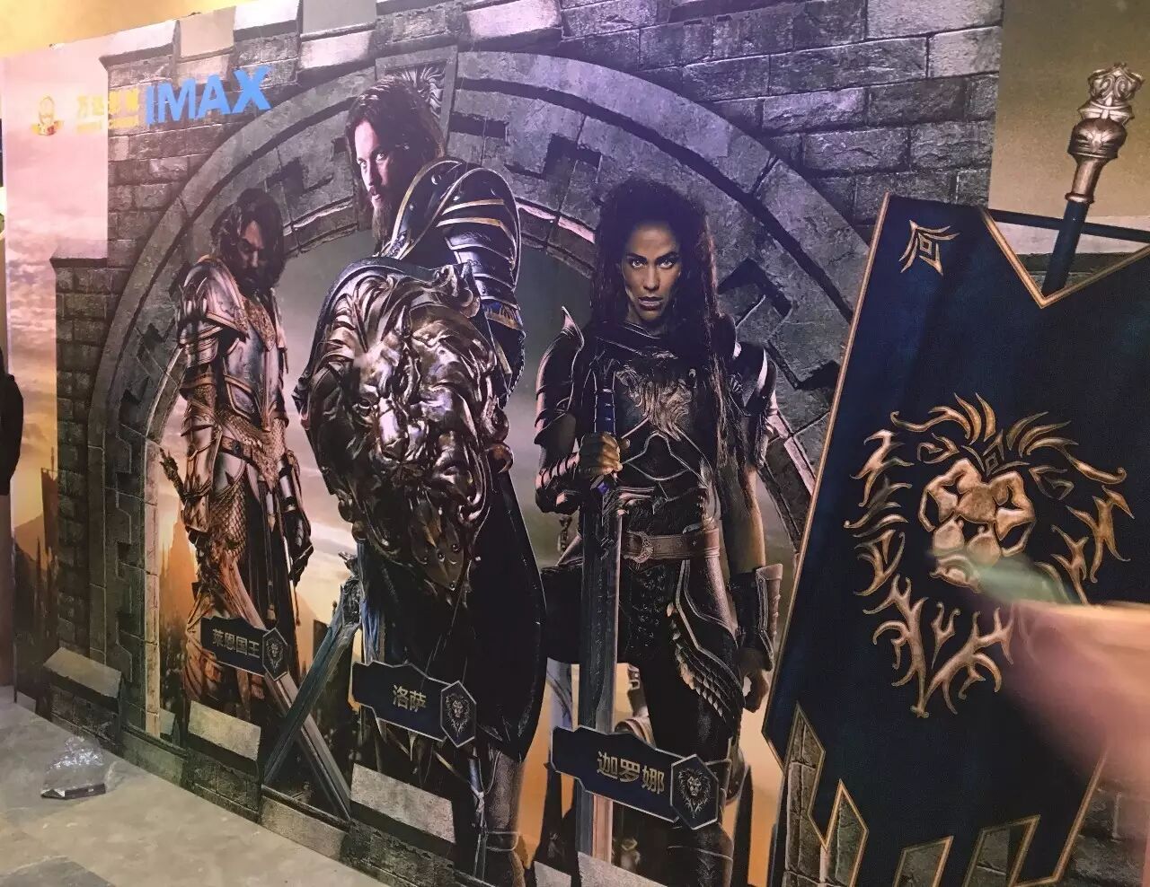 6月7日夜晚11点,记者来到了万达影城。尽管距离首映开幕还有1个小时,整个影城大厅已经人声鼎沸。尽管作为夜猫子的记者已经参加过不少电影的首映场,但是眼前的景象仍然是第一次见到。先不论在场超过90%的男性观众已经让记者感受到了现场浓浓的荷尔蒙,也不论现场各种COSplay和举着大锤拿着盾牌的“不明生物”。你见过检票口排队是分“部落”和“联盟”的么?在两面插着不同颜色旗帜的检票口,已经排成长龙的“联盟狗”和“部落猪”已经做好了进入副本的准备。