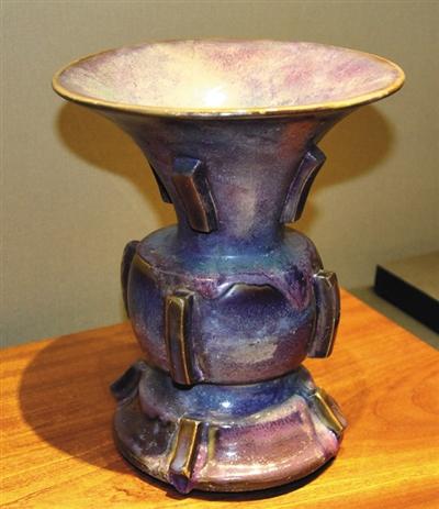 元至明初钧窑玫瑰紫釉出戟尊,河南省文物考古研究院藏。