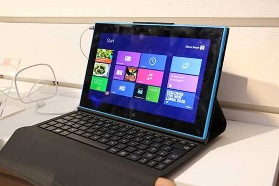 腾讯数码讯(芮敏)如同之前evleaks所爆料,在2013诺基亚世界大会上,Lumia 2520这款平板电脑毫无意外的亮相了。初看到这部诺基亚第一款平板电脑产品,感觉就是大号的Lumia手机,而可拆卸键盘的设计又带有Surface RT的影子,而在短时间试用体验后,又觉得比Surface RT好太多。