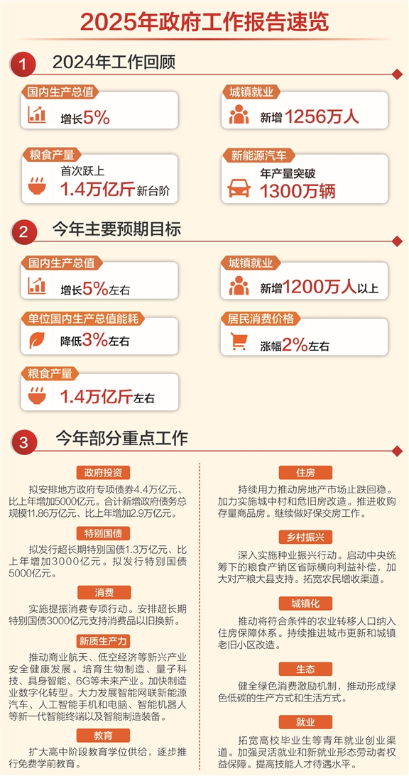 3月5日,十四届全国人大三次会议在北京人民大会堂开幕,国务院总理李强作政府工作报告(以下简称“报告”),提出了多项经济社会发展目标,并为2025年政府工作任务划重点。经济和金融一盘棋。证券时报记者注意到,本次政府工作报告提及“金融”一词20余次,金融从业者对此极为关注,多位行业大咖就此分享了专业见解,期待为经济建设贡献金融力量。