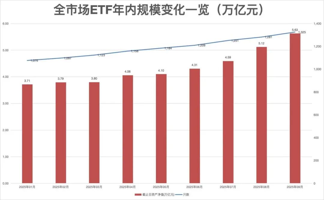 Wind数据显示,截至9月30日,全市场ETF总规模达5.63万亿元。其中,股票ETF总规模突破3.7万亿元,债券ETF规模突破6900亿元,均创历史新高。