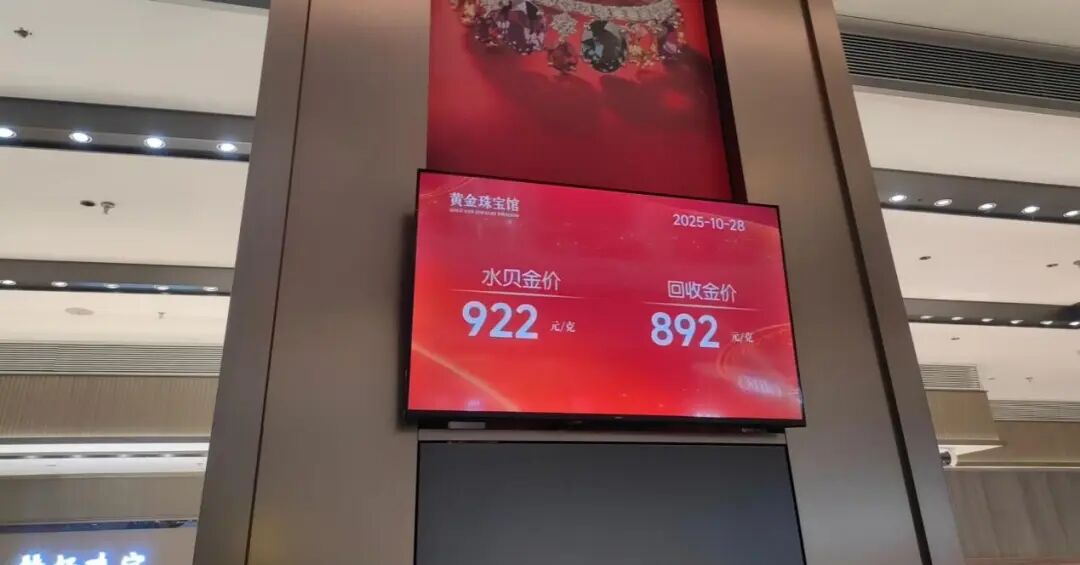 28日,记者在水贝黄金珠宝市场看到,当天的金饰金价为每克922元左右。有商户负责人表示,最近金价跌得很快,这种剧烈的行情或许会经常出现,而在10月17日水贝黄金珠宝市场的金饰克价一度接近1010元,9月初的金饰克价则还不到800元。