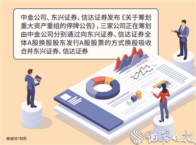 并购重组已成为证券行业高效整合资源、推动战略转型的重要途径之一。11月19日晚间,中金公司、东兴证券、信达证券发布《关于筹划重大资产重组的停牌公告》,三家公司正在筹划由中金公司分别通过向东兴证券、信达证券全体A股换股股东发行A股股票的方式换股吸收合并东兴证券、信达证券。若此次交易顺利完成,其将成为继国泰君安吸收合并海通证券后,行业又一标志性整合案例,进一步推动证券行业向头部集中、特色分化的新格局演进。
