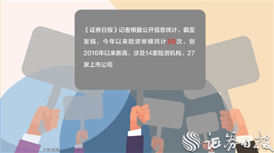 《证券日报》记者根据公开信息统计,截至发稿,2025年以来险资举牌共计38次,创2016年以来新高。涉及14家险资机构、27家上市公司。部分险企在首次举牌上市公司股票后继续增持,从而触发对同一标的的多次举牌。