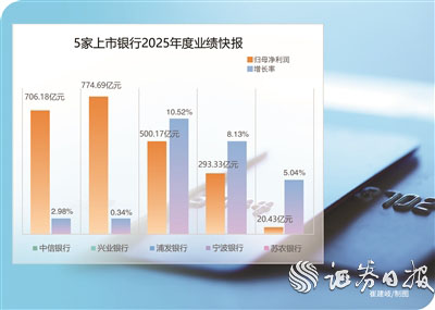截至1月22日记者发稿,A股已有5家上市银行披露了2025年度业绩快报,分别为兴业银行、中信银行、浦发银行、宁波银行、苏农银行。总体来看,5家上市银行2025年归母净利润均实现同比增长;其中3家银行的不良贷款率均较2024年末有所下降。