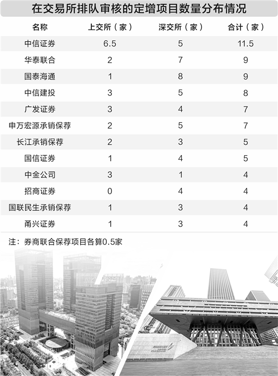 除已落地的增发项目外,证券时报记者以沪深交易所排队审核项目(含已提交注册)为样本观察发现,再融资储备项目同样呈现“马太效应”,行业格局未发生改变。