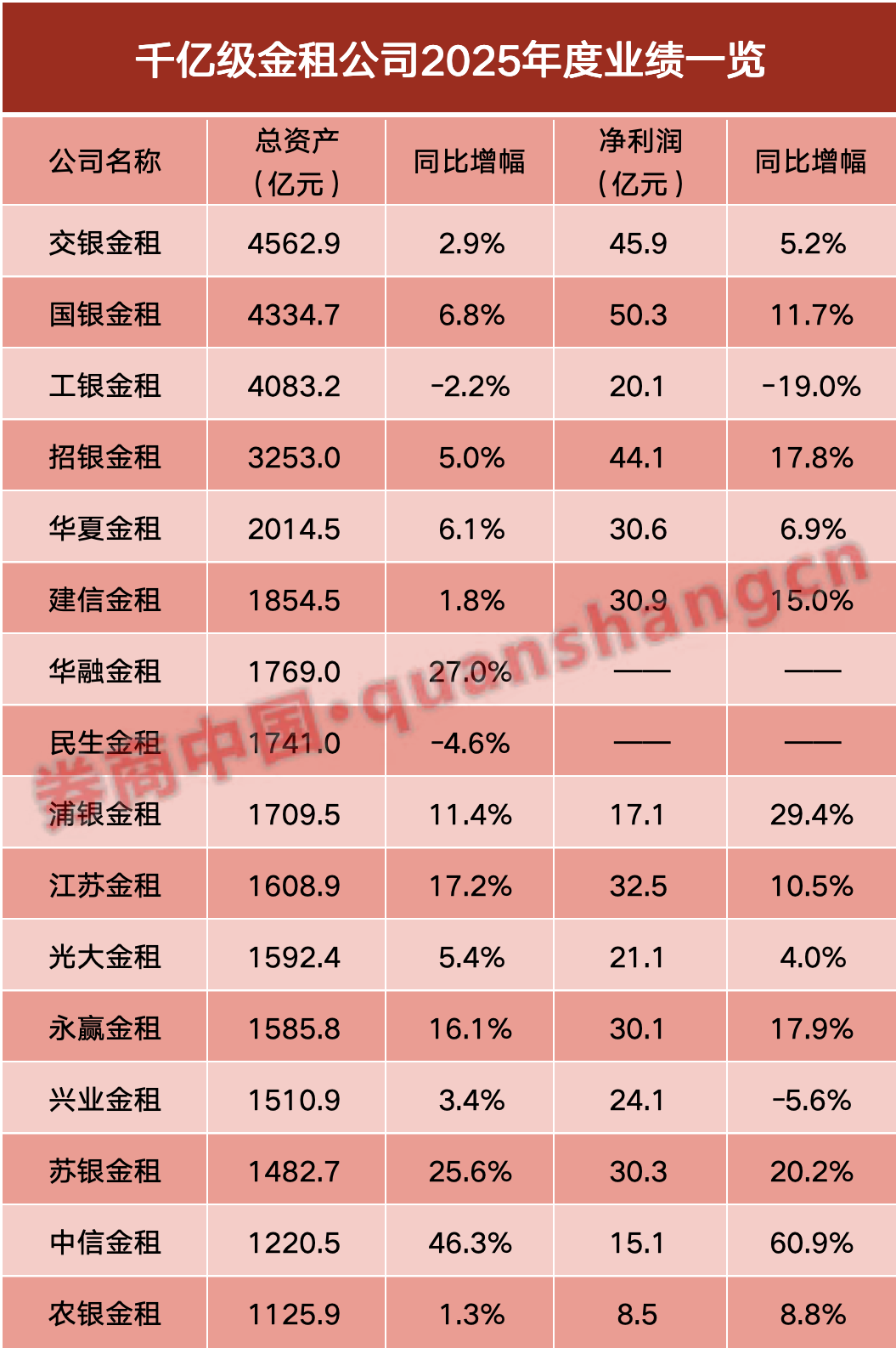 上市公司年报披露行将结束,相对低调的金融租赁公司2025年业绩也相继亮相。