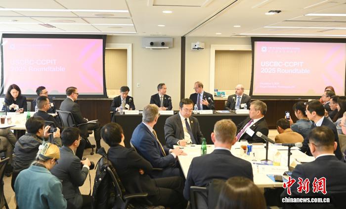 中新社华盛顿12月3日电 (记者 陈孟统)当地时间12月3日,中国贸促会组织中国企业家代表团在华盛顿与美中贸易全国委员会及其会员企业交流座谈。