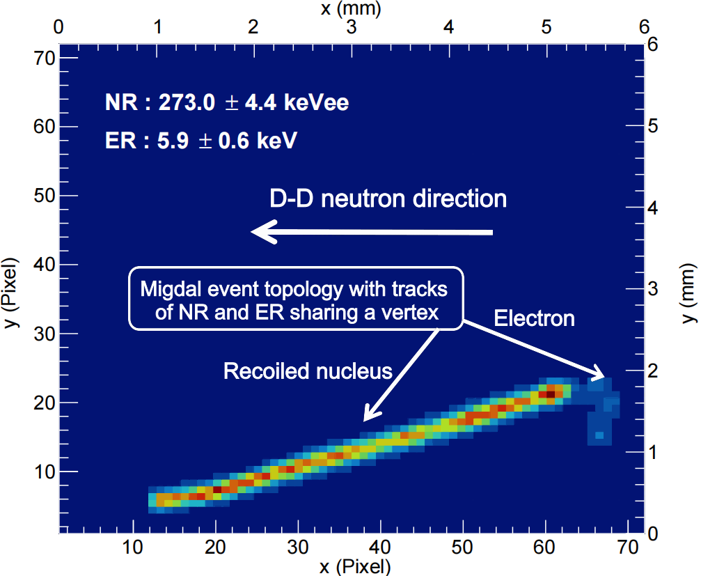 近期,由中国科学院大学主导、多所学校参与的科研团队首次直接观测到米格达尔效应,这一发现为轻暗物质探测突破阈值瓶颈提供关键支撑。上述成果北京时间1月15日在国际学术期刊《自然》上发表。 实验中发现的米格达尔效应事例展示。(受访者供图) 米格达尔效应由苏联著名物理学家阿尔卡季·米格达尔于1939年首次提出:一个原子的原子核突然获得能量加速运动时,原子核在反冲过程中的内部电场变化将部分能量转移给原子核外电子,使电子有概率获得足够能量脱离原子束缚,形成“共顶点”的两条带电径迹。 进入21世纪,科学家们逐渐意识到,米格达尔效应可以是突破轻暗物质探测阈值瓶颈的重要路径之一。自理论预言提出后的80多年间,中性粒子碰撞过程中的米格达尔效应是否存在,一直未被发现或证实,这使得依赖该效应的暗物质探测实验,始终面临“理论假设缺乏实证支撑”的质疑。 据中国科学院大学教授刘倩介绍,团队自主研发了“微结构气体探测器+像素读出芯片”组合的超灵敏探测装置,相当于可拍摄“单原子运动中释放电子过程”的“照相机”。利用紧凑型氘—氘聚变反应加速器中子源,轰击“照相机”内的气体分子,会同时产生原子核反冲与米格达尔电子,二者形成“共顶点”的独特轨迹。通过分析这一特征,团队成功地将这种“米格达尔事件”从伽马射线、宇宙射线等背景干扰中区分开来。首次直接证实了1939年利用量子力学预言的米格达尔效应。 图为探测器结构与工作原理。(受访者供图) 锦屏CDEX暗物质实验负责人岳骞认为,这项成果不仅填补了实验验证米格达尔效应的长期空白,巩固了米格达尔效应的理论基础,还充分体现了国内高品质气体探测技术的能力,为轻质量暗物质探测的应用迈出了坚实的第一步。 项目骨干成员、中国科学院大学教授郑阳恒表示,团队还将与暗物质探测实验团队合作,将此次实验结果融入下一代探测器的研发中。“暗物质是理解宇宙起源与演化的关键,我们的工作让人类在这场‘宇宙寻宝游戏’中,又靠近了目标一步。”郑阳恒说。 图为实验装置与布局。(受访者供图) 此次研究工作由中国科学院大学牵头,广西大学负责核心探测器研发以及提供探测器测试和验证平台,华中师范大学、兰州大学、南京师范大学、烟台大学合作协同攻关。研究得到国家自然科学基金委创新研究群体项目、国家重点研发项目、广西人才小高地等多个基金的支持。(记者农冠斌、陈露缘)