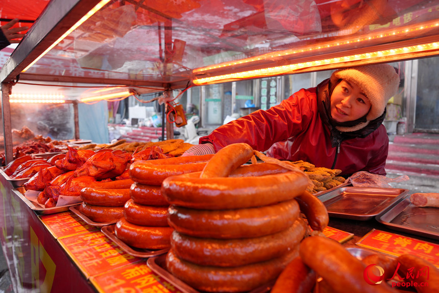 商户在大集上售卖熏制的红肠。人民网记者 李洋摄