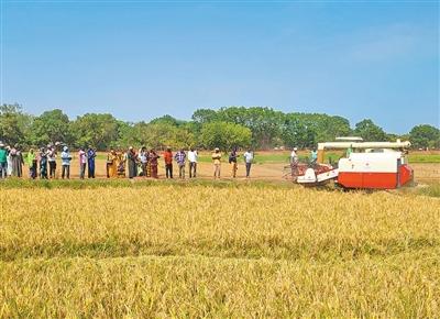农场深处,一阵轰鸣声传来,一台中国品牌联合收割机在金色的稻浪中平稳前行,大口“吞”进稻株,瞬间“吐”出金灿灿的谷粒。“这是我们以前想都不敢想的!”达博抬高音量,试图压过机器的轰鸣。“过去我们几十个人弯腰割一整天的工作量,联合收割机一两个小时就能完成,损失还减少了至少30%!”