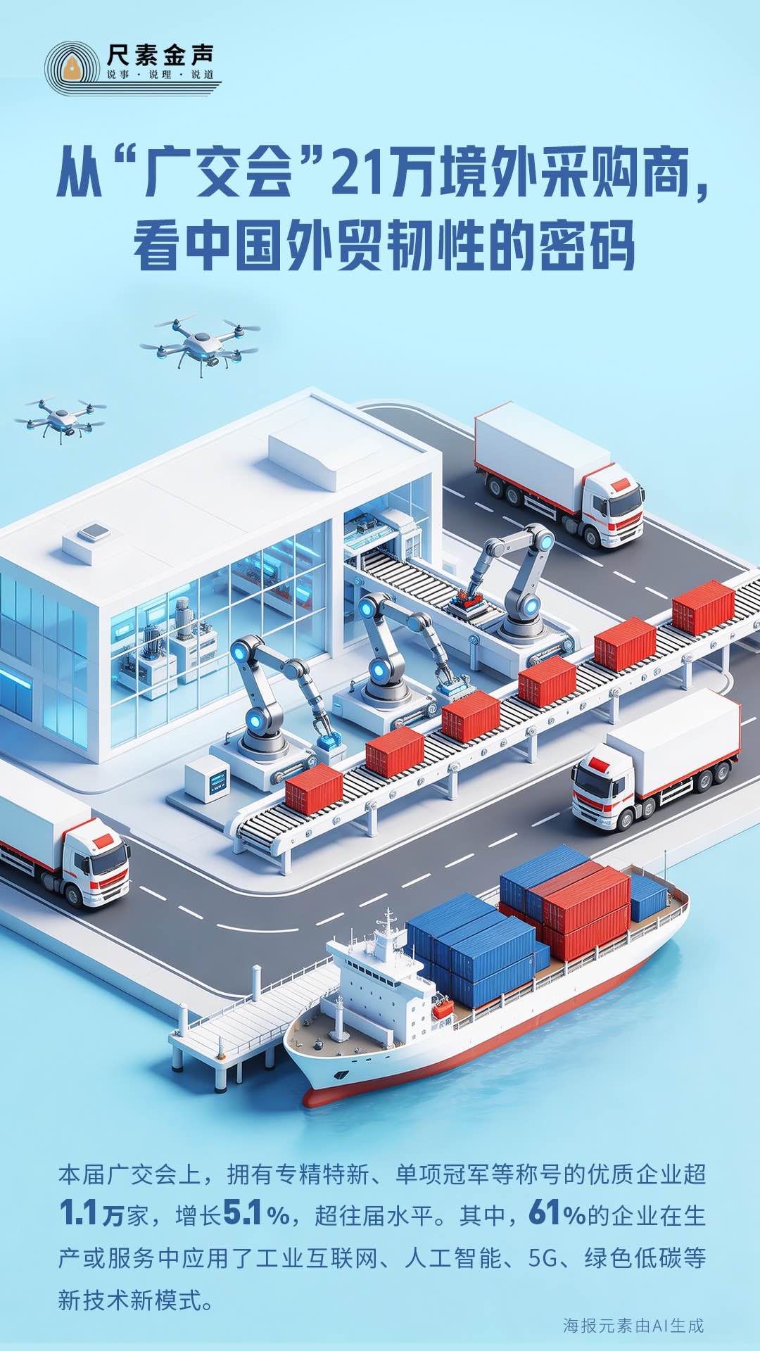 广交会被称为中国外贸的“晴雨表”“风向标”,广交会的历史,就是一部浓缩的中国外贸发展史。21万预登记境外采购商,是中国外贸韧性的硬核证明。透过广交会,我们看到了中国外贸韧性的长期密码。