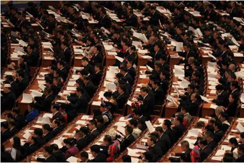 十九大代表们聆听习近平总书记向大会作报告。 (《 中国经济周刊》记者 徐豪 摄)
