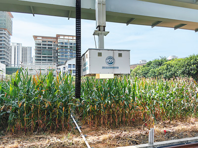 在位于海南省三亚市崖州湾科技城的中国农业科学院国家南繁研究院,高通量植物表型采集平台正在对玉米植株进行数据采集。