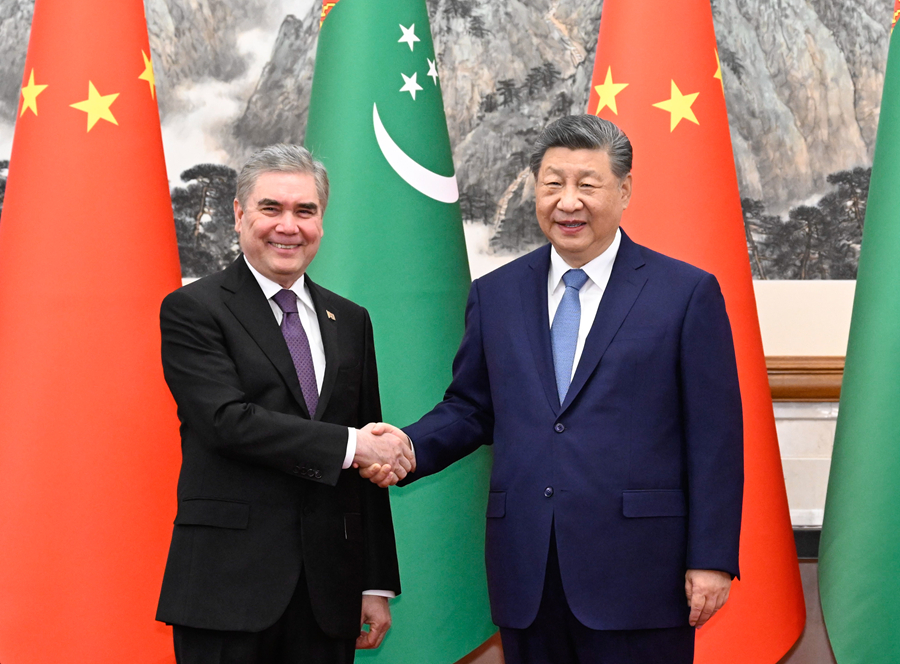 3月18日下午,国家主席习近平在北京钓鱼台国宾馆会见来华进行友好访问的土库曼斯坦民族领袖、人民委员会主席别尔德穆哈梅多夫。新华社记者 申宏 摄 新华社北京3月18日电(记者冯歆然)3月18日下午,国家主席习近平在北京钓鱼台国宾馆会见来华进行友好访问的土库曼斯坦民族领袖、人民委员会主席别尔德穆哈梅多夫。 习近平指出,前不久中国全国两会成功召开,审查批准了“十五五”规划纲要。规划纲要的实施将为中国基本实现社会主义现代化奠定坚实基础,也将惠及世界各国。土库曼斯坦独立35年来,走出一条独立自主、符合自身国情的发展道路。马年伊始,中方愿同土方共商合作大计,共享发展机遇,推动中土命运共同体建设不断走深走实。 习近平强调,相互支持是中土全面战略伙伴关系的核心要义。无论国际形势如何变化,中方将始终支持土方维护国家独立、主权和领土完整,始终支持土方奉行永久中立政策,始终做土方值得信赖的合作伙伴。双方要加快推进共建“一带一路”倡议和“复兴丝绸之路”战略对接,扩大天然气领域合作规模,提升贸易和投资水平,拓展互联互通、农业、人工智能、数字经济、清洁能源等非资源领域合作,加快推进鲁班工坊、中医药中心、互设文化中心工作,打造全方位合作新格局。要坚决打击“三股势力”,为两国发展筑牢安全屏障。当前全球挑战层出不穷,中方愿同土方一道,坚定维护联合国地位和权威,践行真正的多边主义,坚持共商共建共享的全球治理观,以公平正义、开放包容理念引领全球治理变革。 3月18日下午,国家主席习近平在北京钓鱼台国宾馆会见来华进行友好访问的土库曼斯坦民族领袖、人民委员会主席别尔德穆哈梅多夫。新华社记者 翟健岚 摄 别尔德穆哈梅多夫表示,很高兴到访伟大的中国,祝贺中国全国两会成功举行,对各项事业发展作出重大决策部署。中国的繁荣发展使世界受益。中国好,世界会更好。在习近平主席亲自推动下,土中友好关系快速稳定发展,立法机构、党际交往密切,各领域合作内涵丰富,达到全面战略伙伴的高水平。土中合作已成为两国经济社会发展的重要积极因素,符合两国人民的长远利益。土方将一如既往恪守一个中国原则,愿同中方加强发展战略对接,拓展能源、贸易、互联互通等领域务实合作,共谋发展繁荣,共促安全稳定。土方感谢中方支持土库曼斯坦永久中立地位,高度评价习近平主席作为世界级领袖提出的四大全球倡议,赞赏中方在国际事务中一直秉持公正立场。土方愿同中方加强在联合国、中国-中亚机制等多边平台的协调配合,共同维护地区和世界的和平稳定。 3月18日下午,国家主席习近平在北京钓鱼台国宾馆会见来华进行友好访问的土库曼斯坦民族领袖、人民委员会主席别尔德穆哈梅多夫。这是习近平同别尔德穆哈梅多夫一起散步。新华社记者 申宏 摄 王毅参加会见。